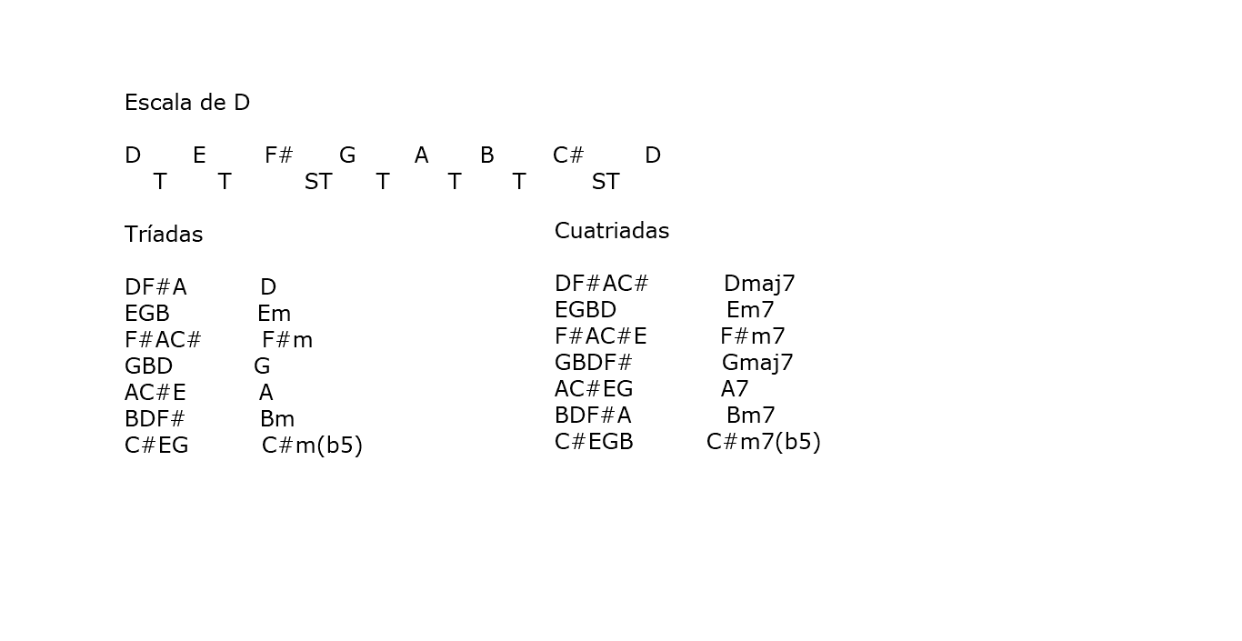 Escala de D – Armonización -Tríadas y Cuatríadas